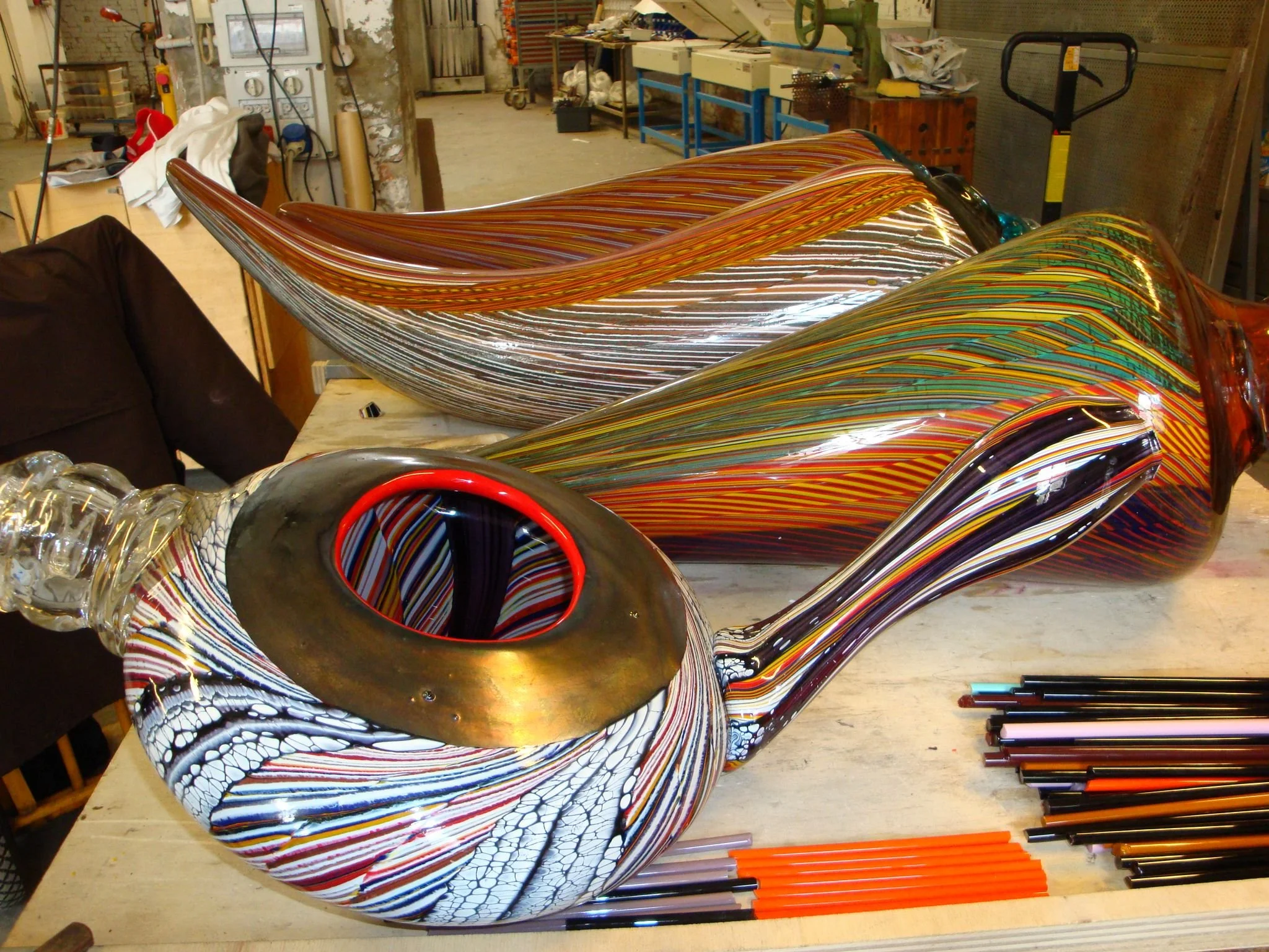The conceptualization of the Battuto series was derived from Davide Salvadore’s colorful blown glass pieces that contained carved glass.